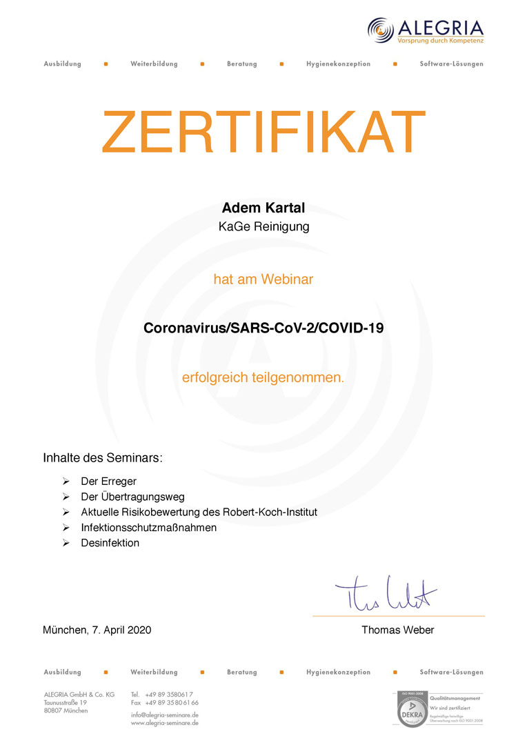 - Erfahrene, trainierte und zuverlässige Reinigungstruppe